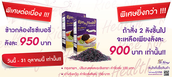 โปรโมชั่นพิเศษ!! ข้าวกล้องไรซ์เบอร์รี่ ข้าวเพื่อสุขภาพ ยิ่งซื้อมาก ยิ่งคุ้มมาก!!!!!! |